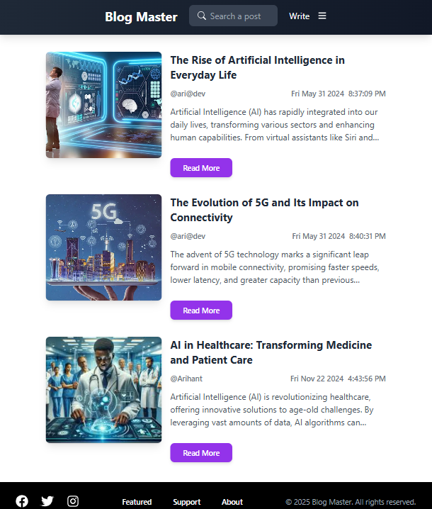 Created an interactive blog website where developers can share ideas and insights, making it easy to use and improving the overall user experience. This increased the number of active users and lowered the bounce rate. Developed the site using ReactJS for a responsive and dynamic frontend, NodeJS and ExpressJS for the backend, and MongoDB with Mongoose for seamless data management. This made the website more engaging for users.